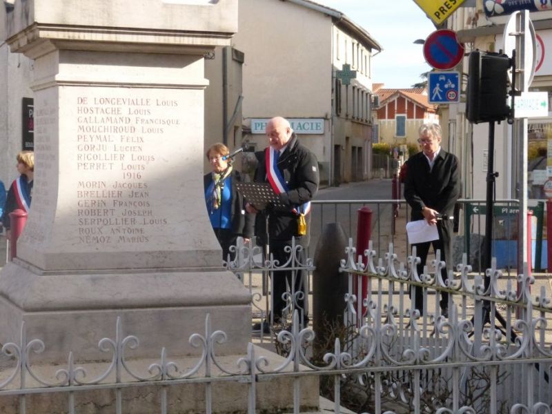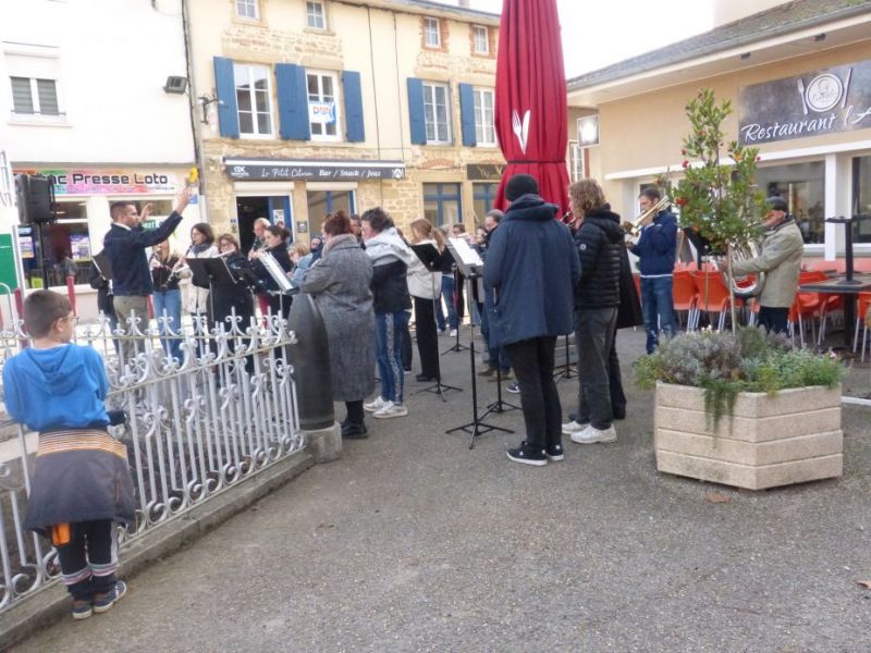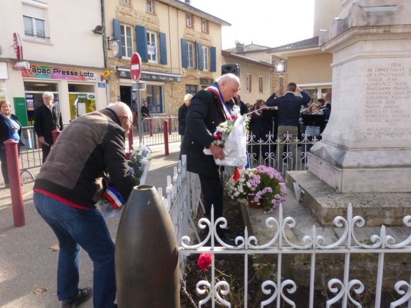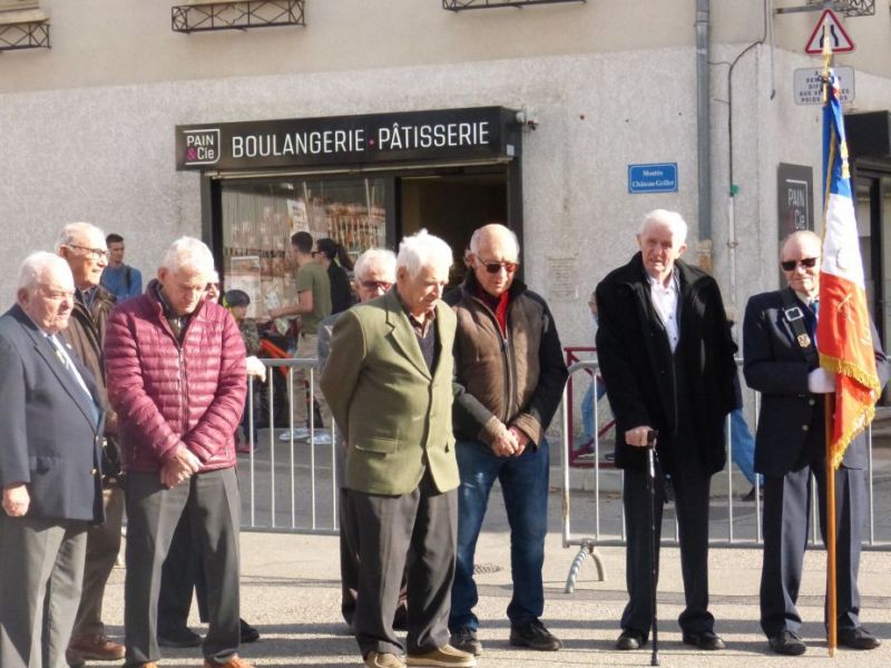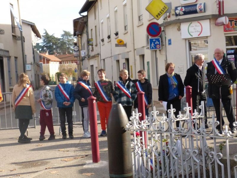 en présence des représentants de la FNACA, de la Gendarmerie, des Pompiers, des enfants du CMEJ et avec la musique de la Gerbe d'or.
